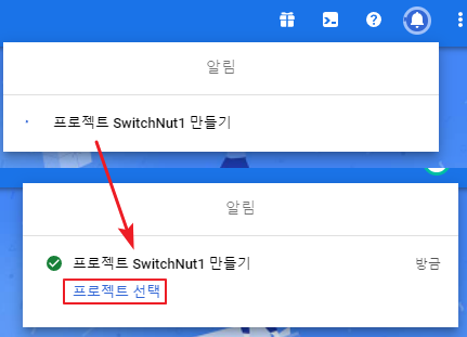 8. 우측 상단 완료 알림바에서 프로젝트 선택 클릭
